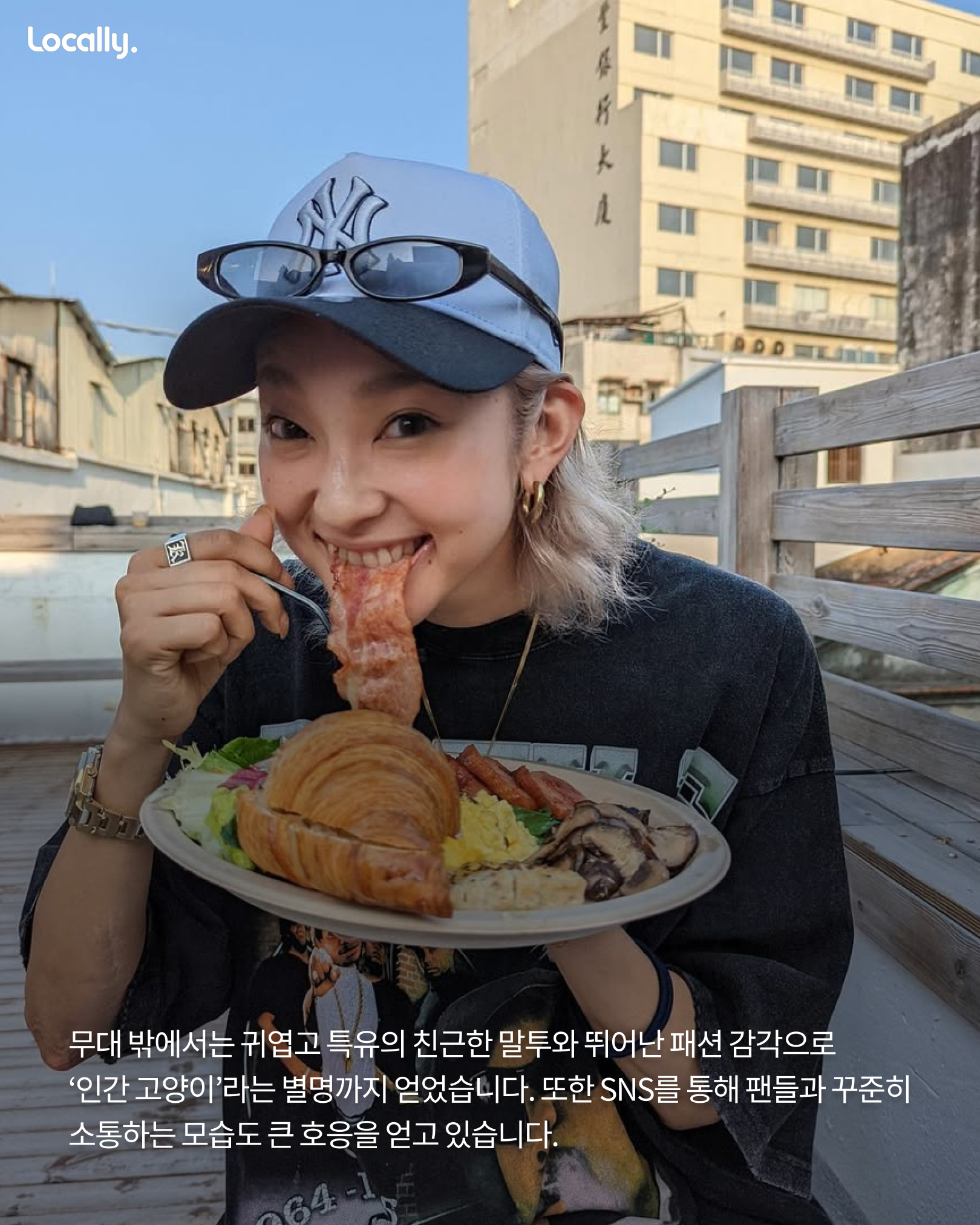 무대 밖에서는 귀엽고 특유의 친근한 말투와 독특한 패션 감각으로 ‘인간 고양이’라는 별명까지 얻었습니다. SNS를 통해 팬들과 꾸준히 소통하는 모습도 큰 호응을 얻고 있습니다.
