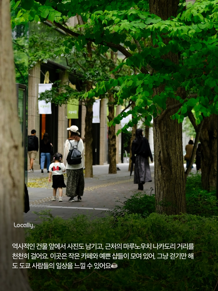🏙️ 마루노우치는 도쿄의 금융과 비즈니스 중심지로, 흔히 도쿄의 월스트리트라고 불리는 곳이에요. 서울로 따지면 여의도 같은 느낌이에요. 멋진 고층 빌딩들과 고급 상점들이 빼곡히 있고, 이곳의 상징인 붉은 벽돌 역사인, 도쿄역 마루노우치 건물은 정말 유명합니다!