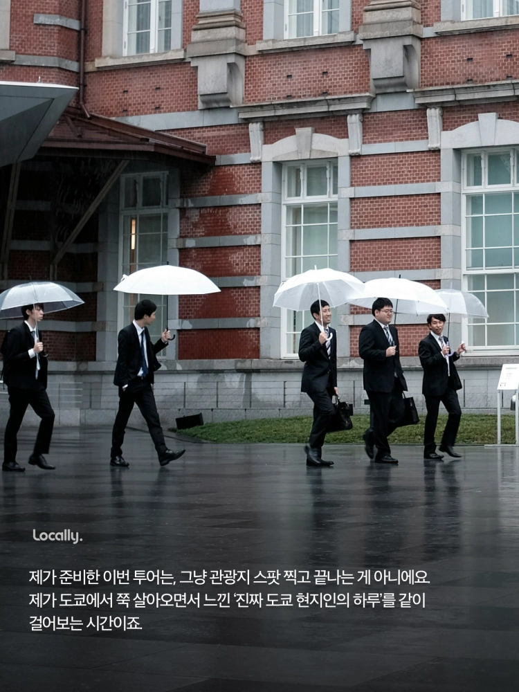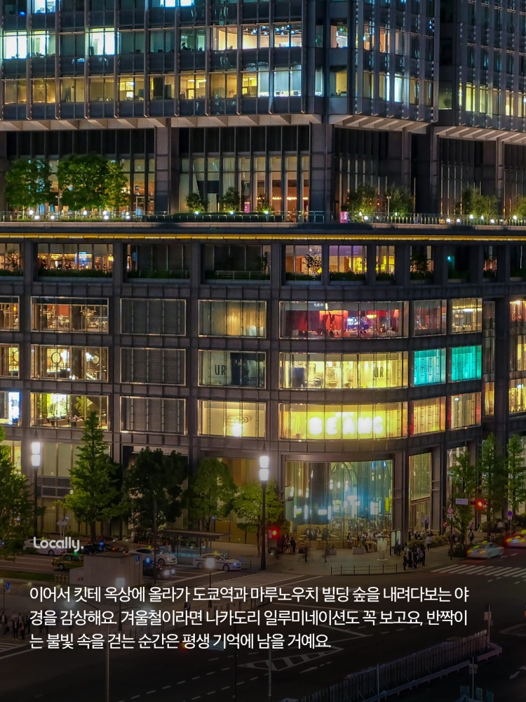 “그리고 빠질 수 없는 건 바로 도쿄역이죠. 붉은 벽돌 건물이 조명에 반짝이는 모습은 저도 올 때마다 새롭더라고요. 특히 마루노우치 쪽에는 사람들이 잘 모르는 포토스팟도 숨어 있어서, 도쿄 스카이라인을 배경으로 특별한 사진을 남기실 수 있어요