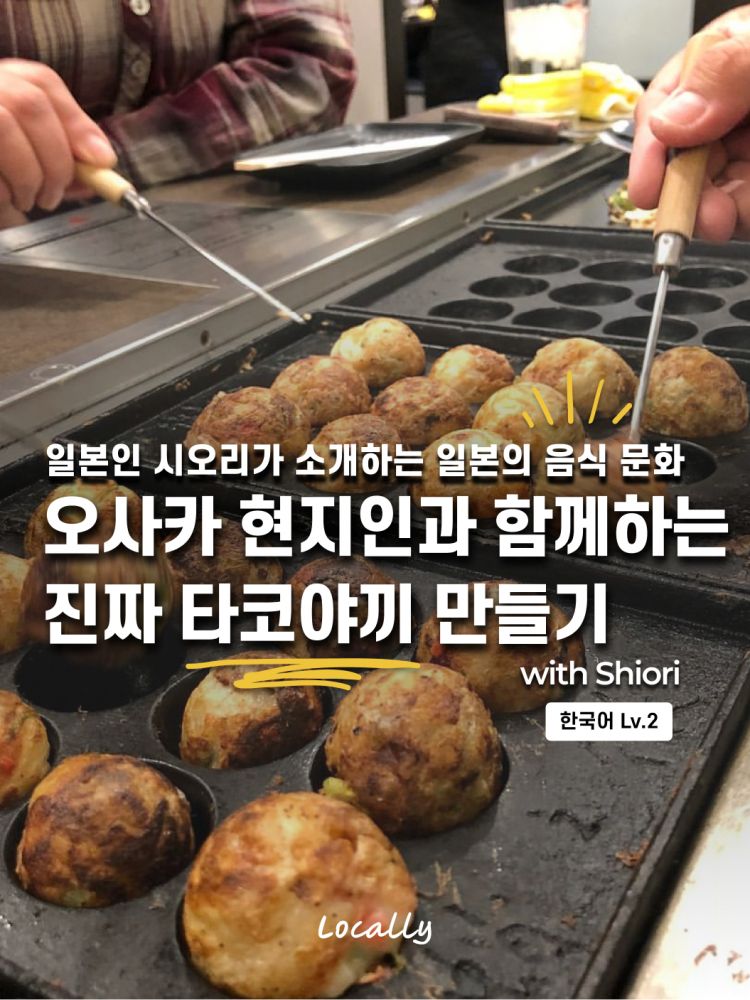 안녕하세요! 오사카에서 태어나고 자란 현지인 제가 여러분께 오사카의 진짜 식문화를 경험할 수 있는 특별한 프로그램을 준비했어요! 오사카는 🍱텐카노 다이도코로(天下の台所, 천하의 부엌)이라는 별명이 있을 만큼 음식이 정말 유명하죠. 타코야끼, 오코노미야키, 쿠시카츠 같은 요리들은 들어보셨을 거예요. 특히 타코야끼는 한국에서도 인기가 많죠? 그런데, 이번엔 그냥 먹는 것만으로는 부족하니까, 저와 함께 오사카에서 직접 만들어보면 어떨까요?! 신선하게 바로 만든 타코야끼의 맛은 정말 달라요! 많은 분들이 타코야끼는 전문점에서만 만들 수 있다고 생각하지만, 사실 오사카 사람들은 집에서도 자주 만들어 먹어요. 타코야끼 기계가 집집마다 있을 정도로요! 저도 어릴 적부터 자주 만들어서 자신 있어요 😉 타코야끼 만드는 비법과 꿀팁을 전수해드릴 테니 기대하셔도 좋아요!