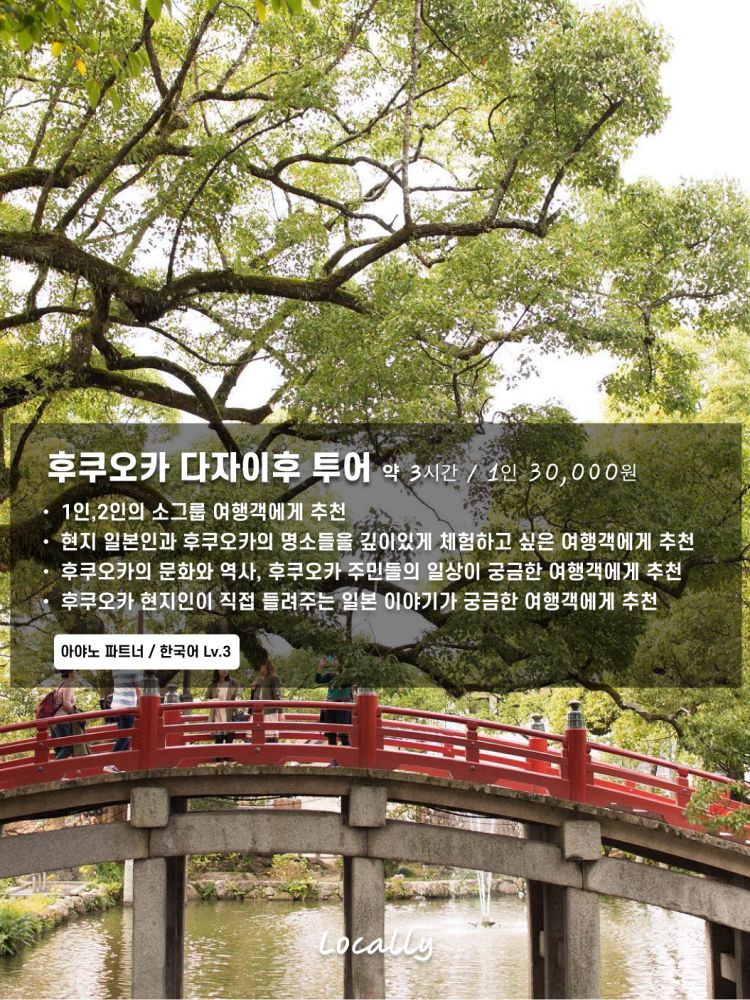 로컬리 투어는 호스트가 준비에 들이는 시간과 비용을 고려해, 기본적으로 2인 이상 예약 시 진행됩니다. 투어 전날까지 예약이 1인일 경우, 자동으로 취소될 수 있어요.