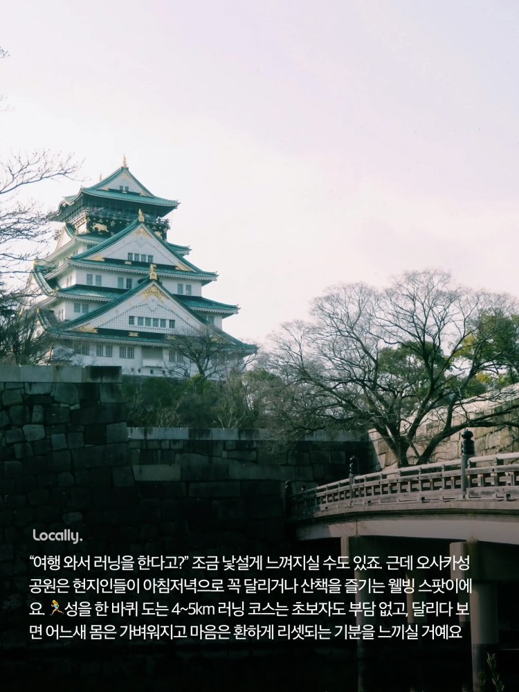 안녕하세요! 오사카에서 필라테스 강사로 활동하고 있는 카나입니다 :) 여행 와서 러닝이라니, 조금 낯설게 느껴지실 수도 있죠? 하지만 오사카성 공원을 달리는 경험은 단순한 운동이 아니라, 도시를 색다르게 즐길 수 있는 특별한 방법이에요. 🏃♀️🌿