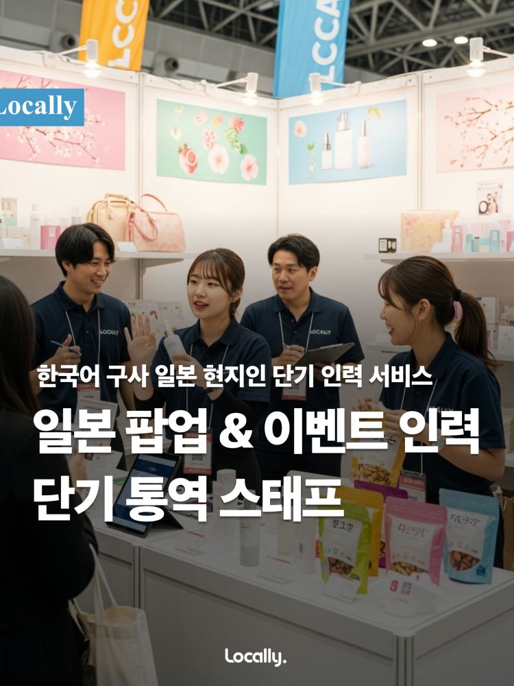 Locally는 한국어와 일본어에 모두 능통하며 한국 브랜드에 대한 깊은 이해도를 가진 현지 스태프(단기 인력)를 파견합니다. 고객 응대부터 제품 설명, 현장 이벤트 진행까지, 귀사의 일본 현지 팀원처럼 완벽하게 기능하여 브랜드 가치를 높이고 매출을 극대화합니다.