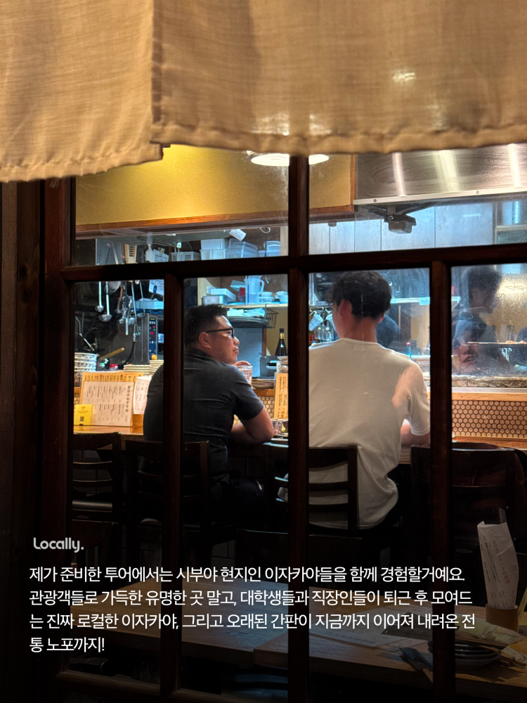 시부야는 관광지로 유명하지만, 🎓아오야마가쿠인대학, 고쿠가쿠인대학 등 대학들이 많아서, 대학생들이 자주 가는 가성비 좋은 이자카야들이 많아요! 이 투어에서는 그런 🏮대학생들에게 인기 있는 대중 이자카야부터 🏮오랜 전통을 자랑하는 로컬 노포 이자카야까지 알차게 소개해드릴게요!
